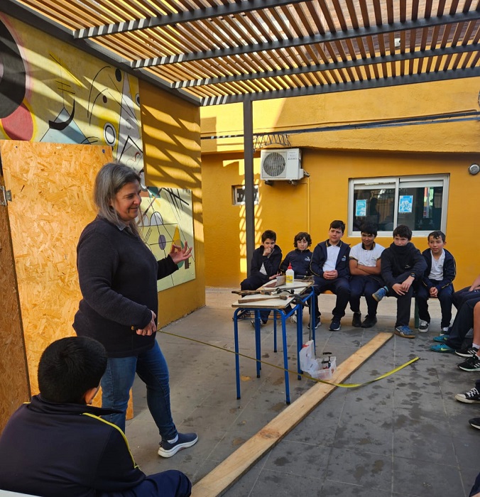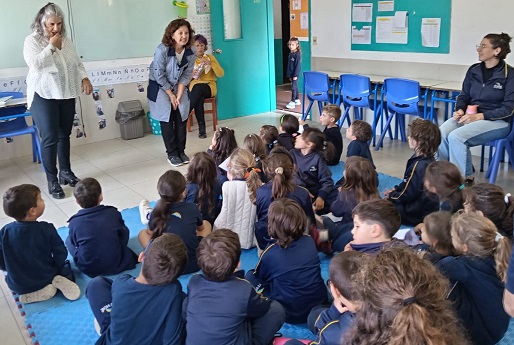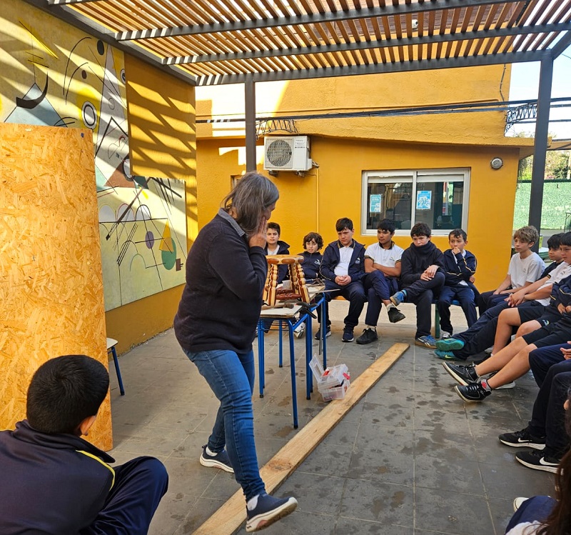 Ximena Soares Netto, mamá de nuestros alumnos Emily y Noah Hennig, nos visitó para los grupos de 7mo.A, B y C, con la dramatización Asamblea en la carpinteria.